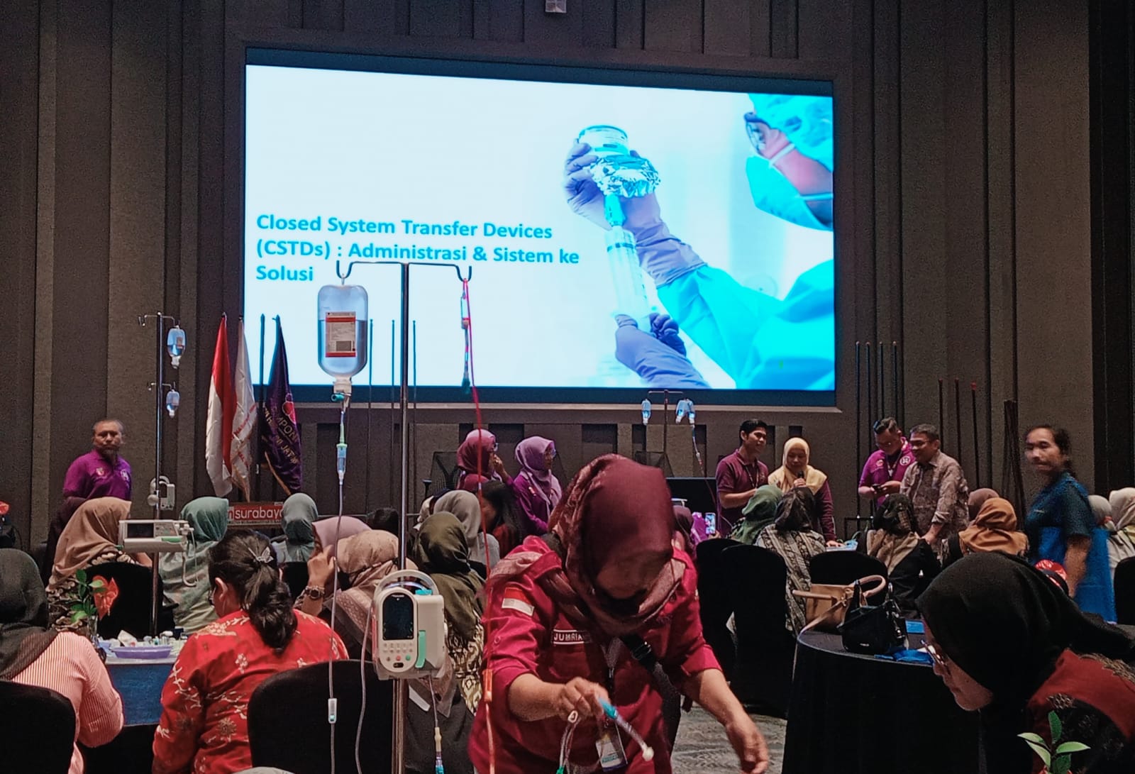 Selanjutnya Room III (Workshop 3) dengan tema Safety Handling with CSTDs (Close System Devices) during chemoterapy prosedure dengan Narsum dan