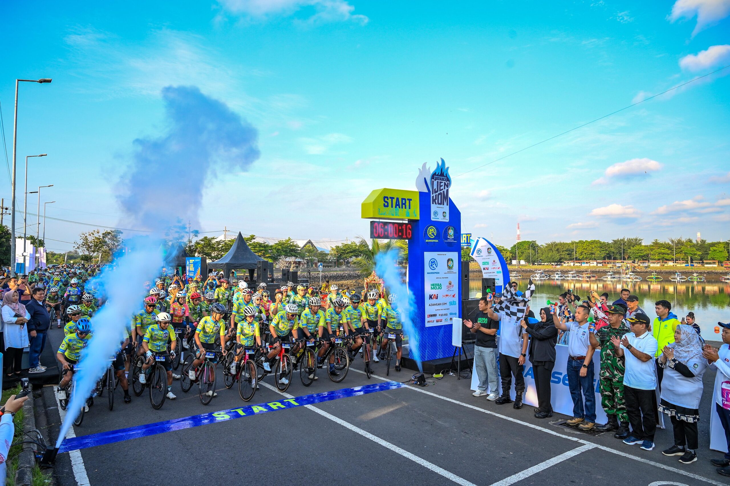 Banyuwangi Bluefire Ijen KOM 2025 mengambil start di Pantai Boom Marina, Sabtu pagi 27 September 2025. Panitia sengaja memundurkan waktu start menjadi pukul 06.00 WIB agar peserta lebih dulu menikmati momen matahari terbit dari Pantai Boom Marina yang merupakan spot terbaik menikmati sunrise di Banyuwangi.