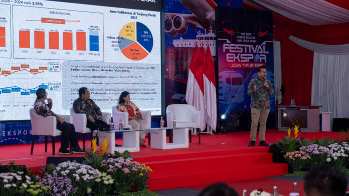 kilassurabaya.com | SURABAYA – PT Terminal Petikemas Surabaya (TPS), anak usaha PT Pelindo Terminal Petikemas (SPTP), berkesempatan menjadi tempat pelaksanaan Festival Ekspor Jawa Timur 2025. Kegiatan yang diinisiasi oleh Dinas Perdagangan dan Perindustrian Provinsi Jawa Timur ini diselenggarakan pada Rabu (26/11). Penentuan TPS sebagai tempat pelaksanaan Festival Ekspor sekaligus Pelepasan Ekspor dilakukan dengan pertimbangan keselarasan dengan peran TPS terminal petikemas dengan proporsi layanan terhadap petikemas internasional lebih dari 95% dibandingkan dengan layanan terhadap petikemas domestik setara kurang dari 5% dibandingkan total volume bongkar muat TPS.