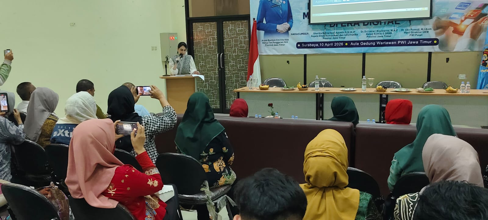 kilassurabaya.com | SURABAYA – Dalam rangka Hari Pers Nasional 2026 dan HUT PWI ke-80, Pengurus Ikatan Keluarga Wartawan Indonesia (IKWI) Provinsi Jawa Timur menggelar acara seminar “Seminar Peran Perempuan Dalam Mengakses dan Menyebarkan Informasi di Era Digital” di Aula Kantor PWI Jawa Timur, Jalan Taman Apsari 15-17, Surabaya, Jumat (10/4) sekitar pukul 13.45.